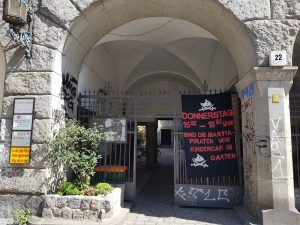 Das schmiedeeiserne Tor: Links geht es zur Beratungsstelle, rechts zur Selbsthilfestelle 20180614_150459 (1) – Kopie